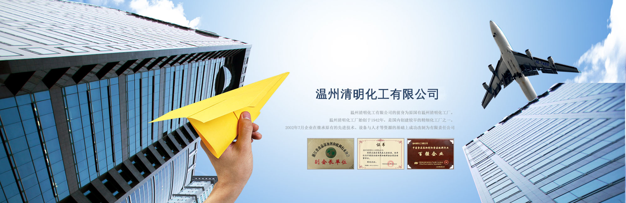 溫州清明化工有限公司的前身為原國有溫州清明化工廠。溫州清明化工廠始創于1942年,是國內創建較早的精細化工廠之一。2002年7月企業在繼承原有的先進技術、設備與人才等資源的基礎上成功改制為有限責任公司,次年通過了ISO9001國際認證。2005年,公司喜遷新址,落戶溫州工業園區,生產和經營規模又上了一個新臺階,如今公司已發展成為在全國有較大影響的食品添加劑和環氧樹脂固化劑專業生產基地。